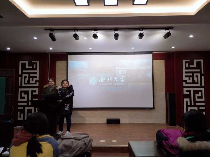 随后,小组成员们通过PPT和视频向同学们宣讲了西北大学悠久的校史、专业特色、科研成果、优秀校友、学分制改革、住宿条件等内容。